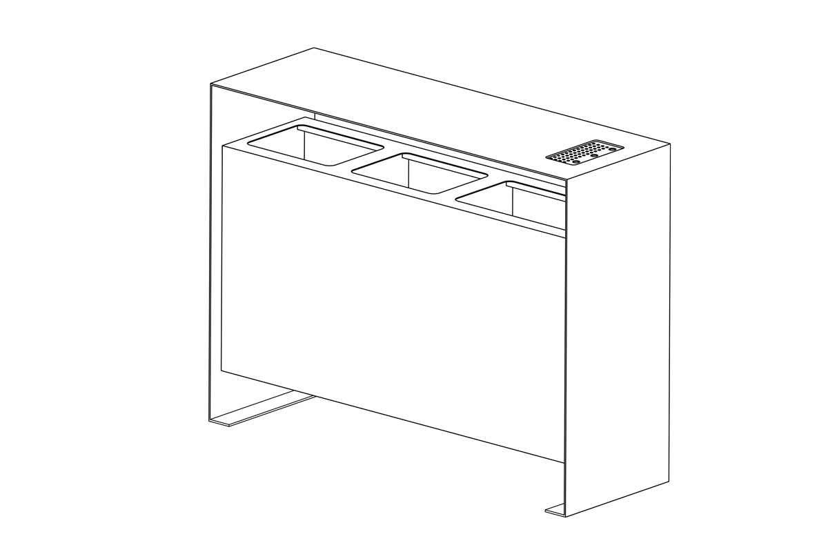 This product is designed for three different types of waste – PET/MET, Paper, and mixed waste. Every section has its own inner bin. Urban waste set is made completely out of non-corrosive material for safe outside use (Stainless steel - AISI 304). Ashtray is located on top part of the set. On the front of the urban set, singe door for all three inner bins are secured by locking mechanism. Anchoring of Urban set is easily done using 4 screws.