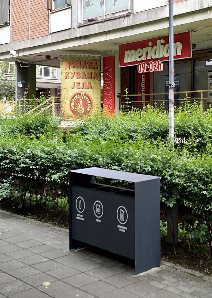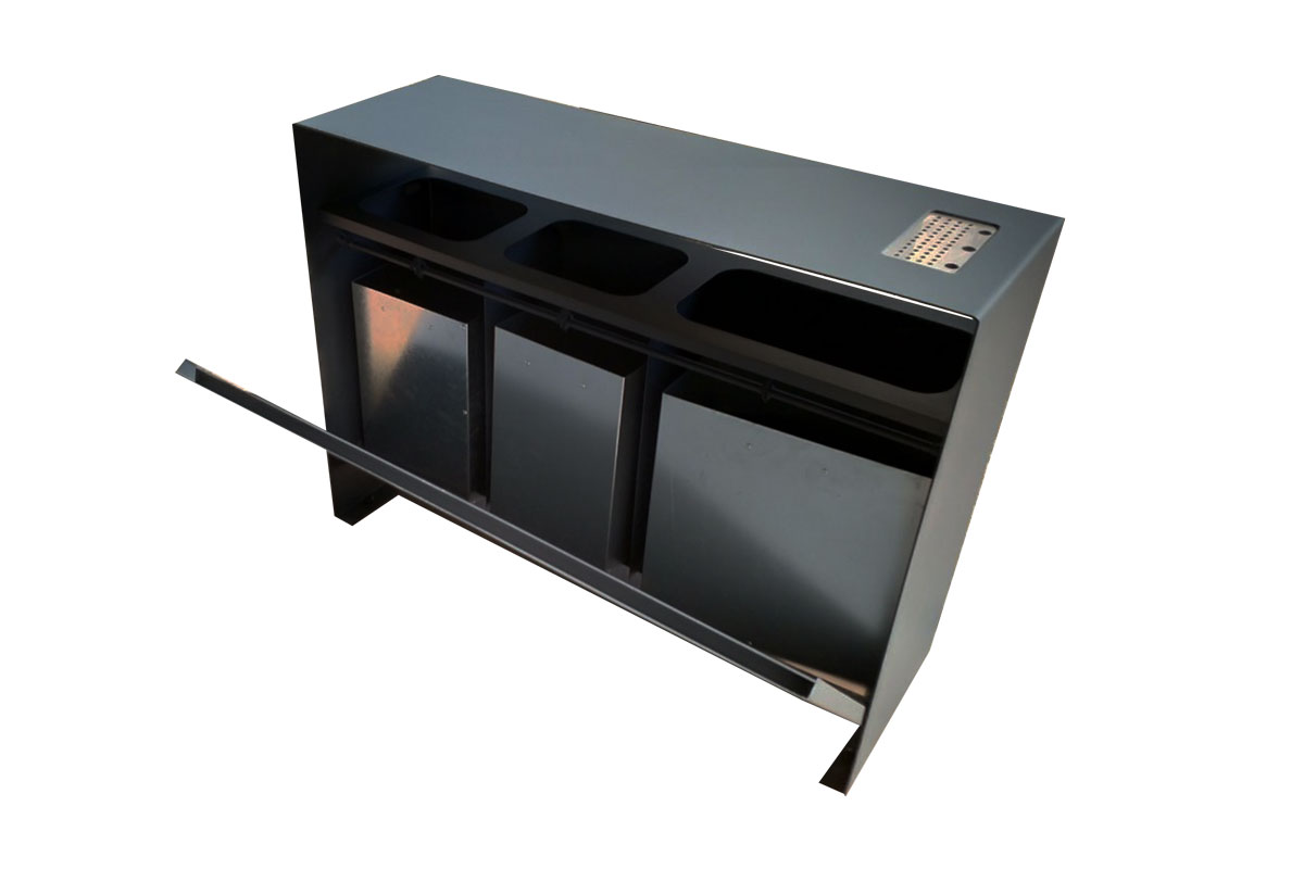 Urban Waste set is produced from Stainless steel, and then powder coated in color defined by customer. Dimensions are : 120 x 90 x 40 cm